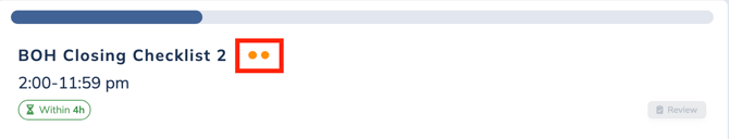 The dots next to the Checklist name indicates the number of sections. If greyed, it means the sections are not assigned to anyone. Orange indicates that section is assigned and in progress. Green indicates checklist is completed.
