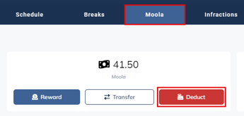 Moola can be manually deducted, by default managers and higher can deduct moola from a team member.
