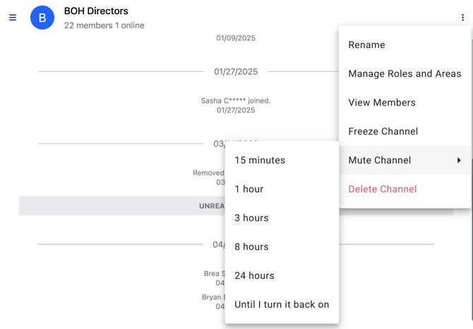 - Mute - quiet your notifications for a specific channel.