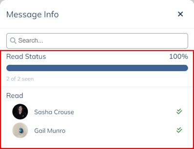 Users can view read receipts for messages they’ve sent. Read receipts are available for both direct messages and channels.